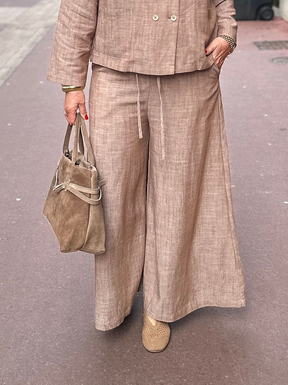 Pantalon lin large camel